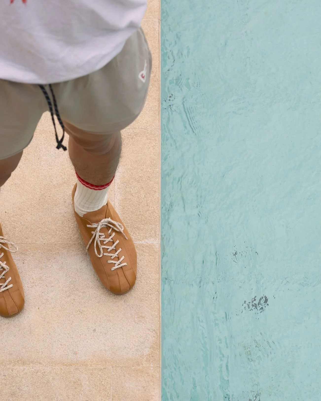Crafted from premium red suede, each shoe is made from a single layer of leather—soft, flexible, and lightweight, yet structured enough to hold its shape beautifully. So soft, in fact, you can flatten the entire shoe with one hand.